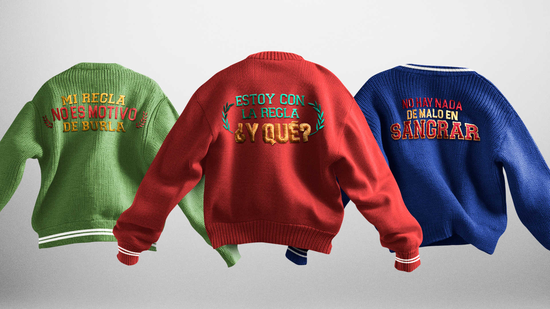 Así es, utilizaremos los mismos colores, tipografías y texturas de las chompas para convertirlas en un símbolo de lucha contra el bullying por la menstruación.